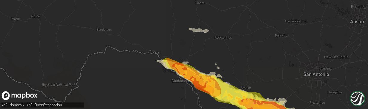 | 02/21/201610:25 PM CST | Ping pong size hail reported in north del rio |