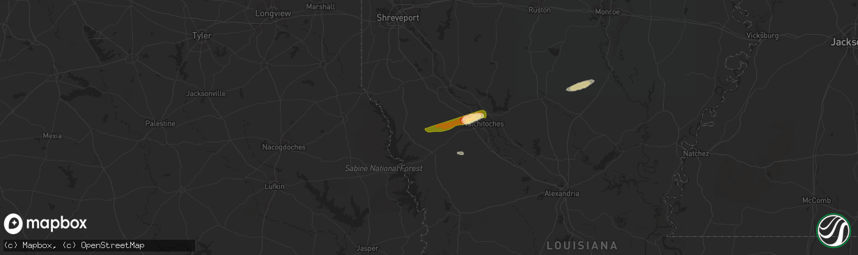 The weather event in Belmont, LA on February 25, 2014 includes Hail map. 2 states and 12 cities were impacted and suffered possible damage. The total estimated number of properties impacted is 123.