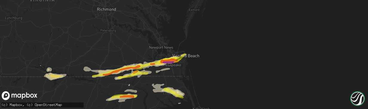 The weather event in Virginia Beach, VA on March 31, 2017 includes Hail map. 4 states and 89 cities were impacted and suffered possible damage. The total estimated number of properties impacted is 49,219.