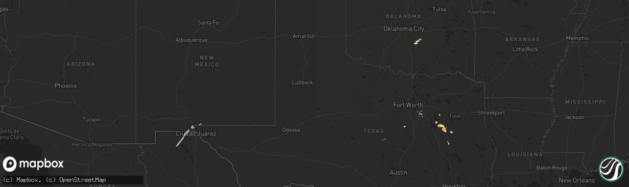 The weather event in Texas on April 8, 2012 includes maps. 0 states and 0 cities were impacted and suffered possible damage. The total estimated number of properties impacted is 0.
