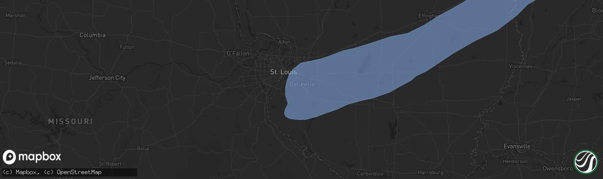 Estimated number of impacted properties by a 2.50" hail or largerStorm reports in Belleville, IL
