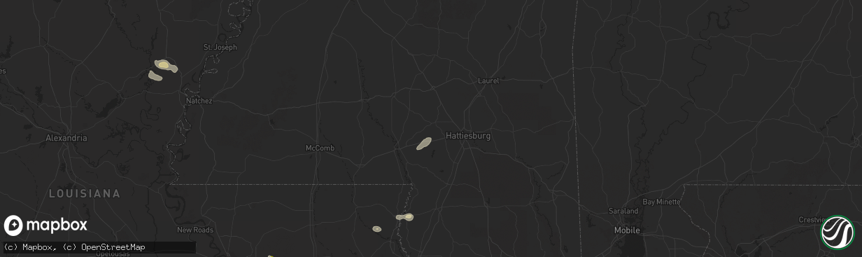 The weather event in Sumrall, MS on April 25, 2025 includes Hail, Tornado, and Wind maps. 14 states and 316 cities were impacted and suffered possible damage. The total estimated number of properties impacted is 0.