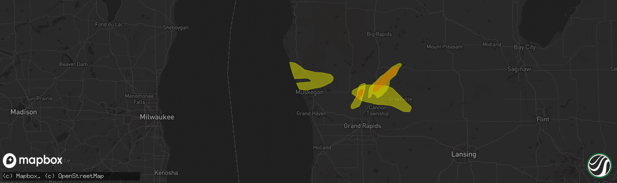 The weather event in Muskegon, MI on April 30, 2014 includes Hail map. 8 states and 207 cities were impacted and suffered possible damage. The total estimated number of properties impacted is 8,623.