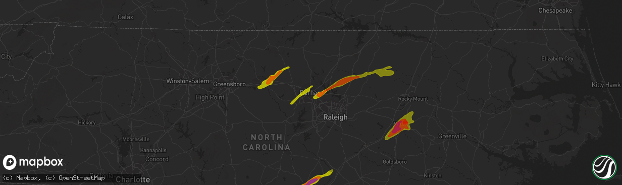 The weather event in Durham, NC on April 30, 2014 includes Hail map. 8 states and 207 cities were impacted and suffered possible damage. The total estimated number of properties impacted is 13,009.