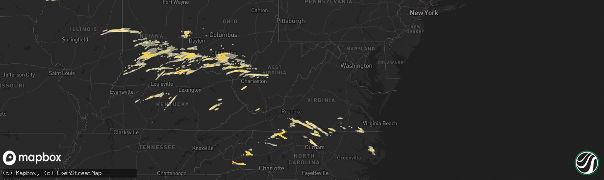 The weather event in Virginia on May 1, 2012 includes Hail map. 17 states and 1,107 cities were impacted and suffered possible damage. The total estimated number of properties impacted is 0.