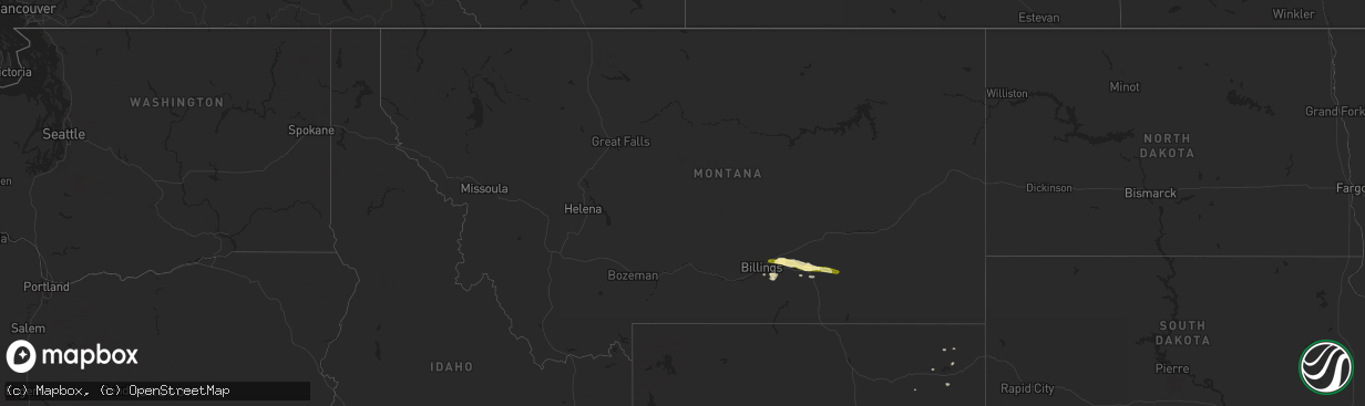 The weather event in Montana on May 5, 2014 includes maps. 0 states and 0 cities were impacted and suffered possible damage. The total estimated number of properties impacted is 0.