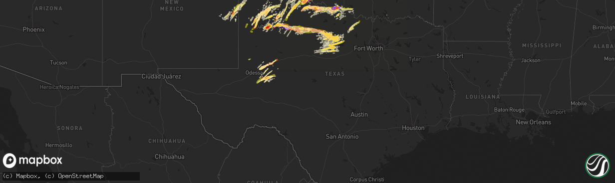 | 05/07/201511:23 PM CDT | A local report indicates 1.00 inch wind near BIG SPRING |