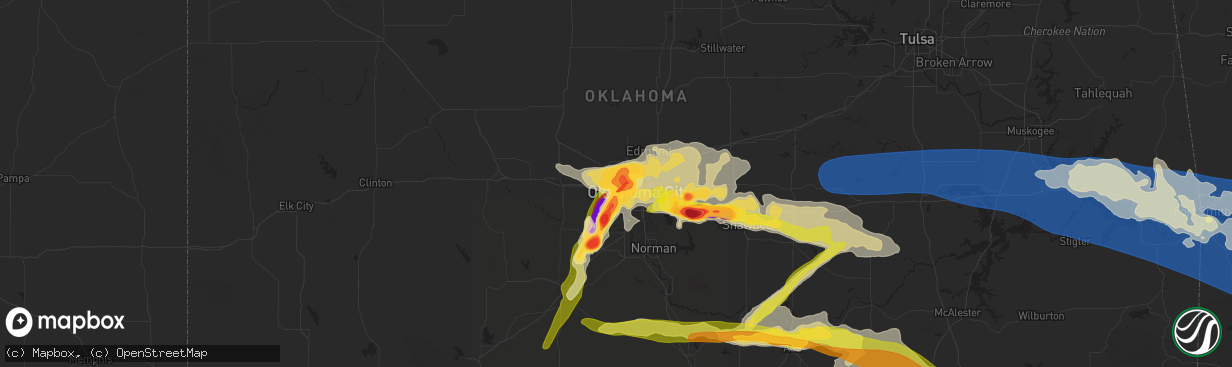 Estimated number of impacted properties by a 2.50" hail or largerStorm reports in Bethany, OK