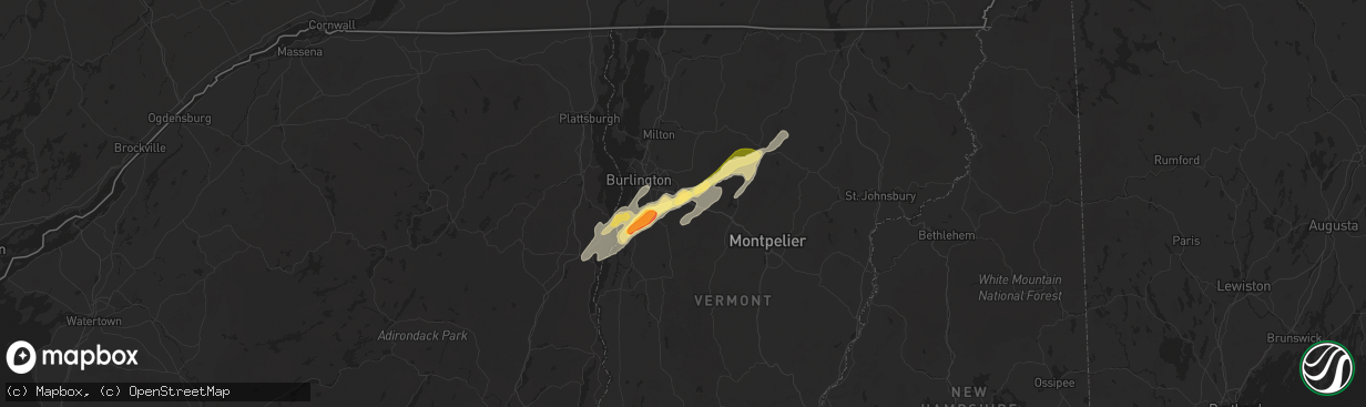 Estimated number of impacted properties by a 2.50" hail or largerStorm reports in Richmond, VT
