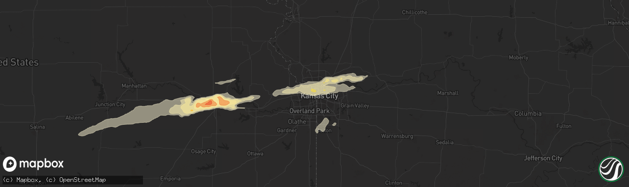 The weather event in Kansas City, KS on May 30, 2013 includes Hail map. 18 states and 937 cities were impacted and suffered possible damage. The total estimated number of properties impacted is 0.