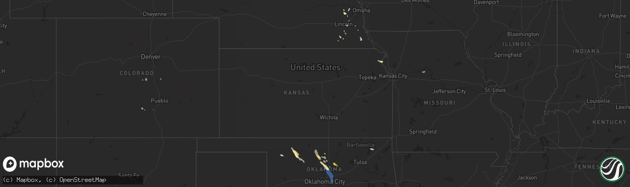 Estimated number of impacted properties by a 2.50" hail or largerStorm reports in Kansas