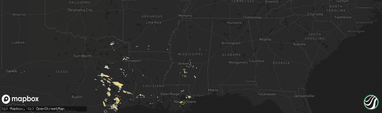 The weather event in Mississippi on June 6, 2013 includes maps. 0 states and 0 cities were impacted and suffered possible damage. The total estimated number of properties impacted is 0.