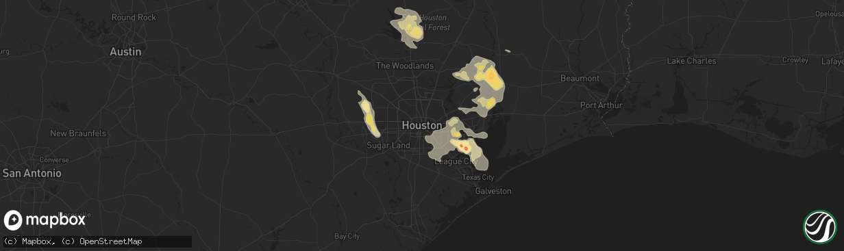 The weather event in Houston, TX on June 6, 2013 includes maps. 0 states and 0 cities were impacted and suffered possible damage. The total estimated number of properties impacted is 0.