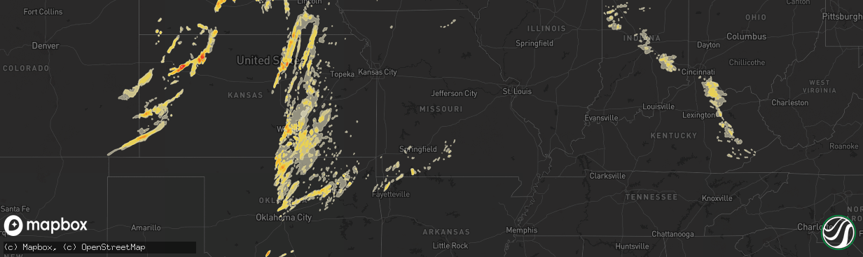 The weather event in Arkansas on June 20, 2011 includes maps. 0 states and 0 cities were impacted and suffered possible damage. The total estimated number of properties impacted is 0.