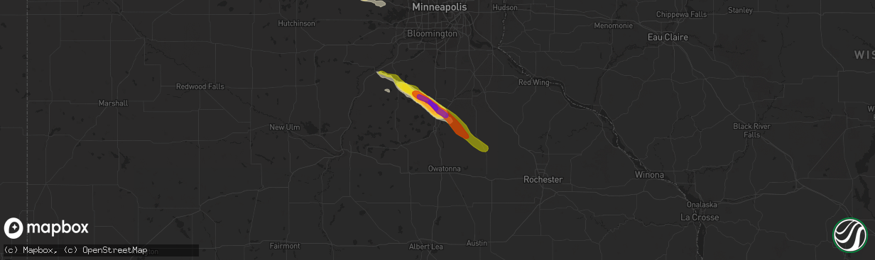 Hail Map in Faribault, MN on June 22, 2016