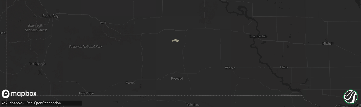 Estimated number of impacted properties by a 2.50" hail or largerStorm reports in White River, SD