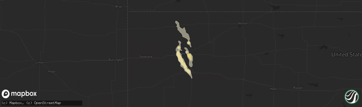 The weather event in Colby, KS on July 22, 2015 includes Hail map. 16 states and 161 cities were impacted and suffered possible damage. The total estimated number of properties impacted is 0.