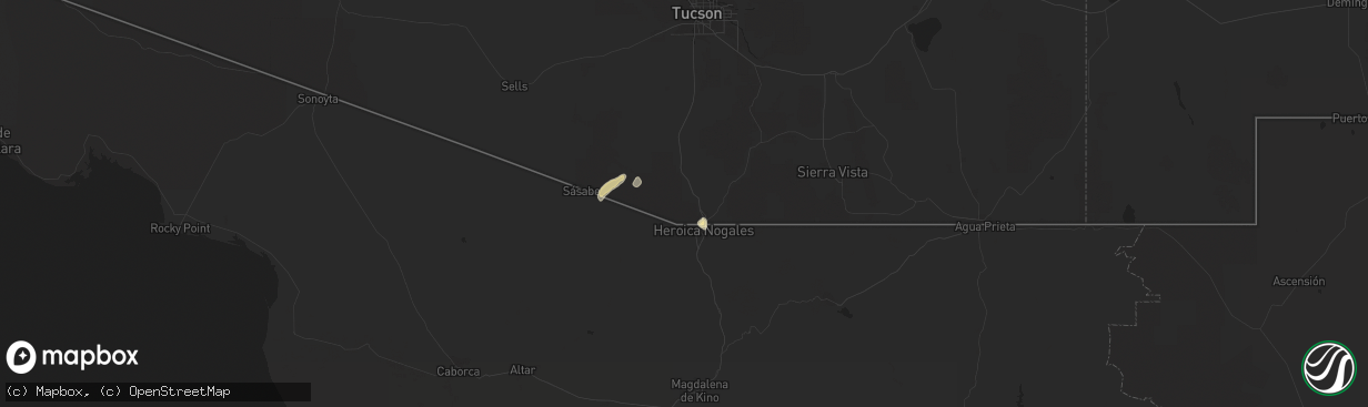 The weather event in Nogales, AZ on July 25, 2014 includes Hail map. 13 states and 143 cities were impacted and suffered possible damage. The total estimated number of properties impacted is 0.