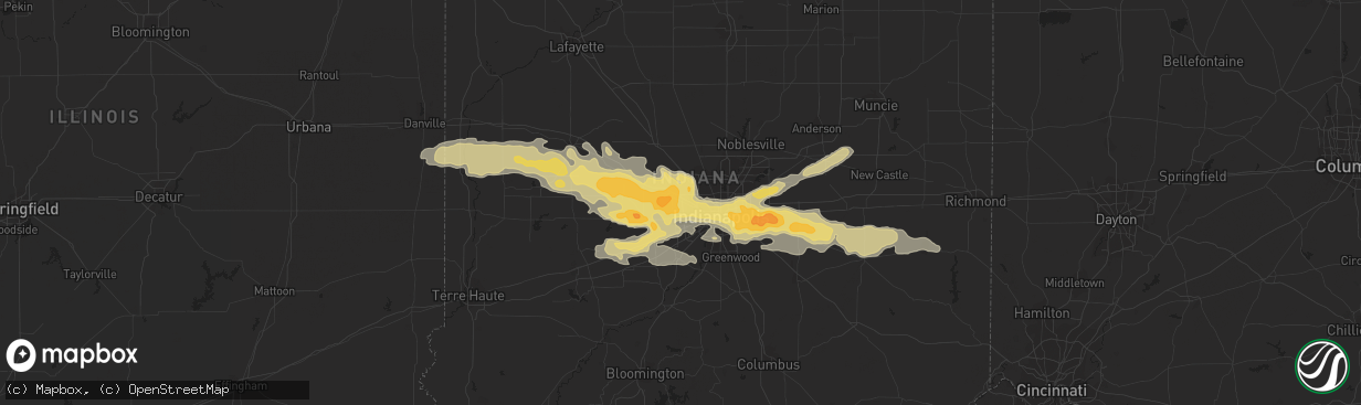 The weather event in Beech Grove, IN on September 21, 2012 includes Hail map. 5 states and 152 cities were impacted and suffered possible damage. The total estimated number of properties impacted is 0.