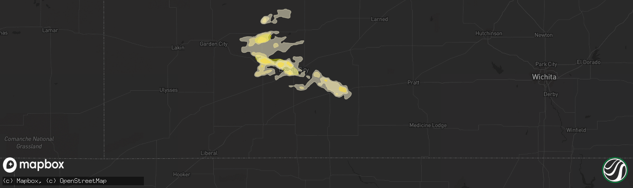 The weather event in Ford, KS on September 23, 2014 includes Hail map. 4 states and 73 cities were impacted and suffered possible damage. The total estimated number of properties impacted is 0.