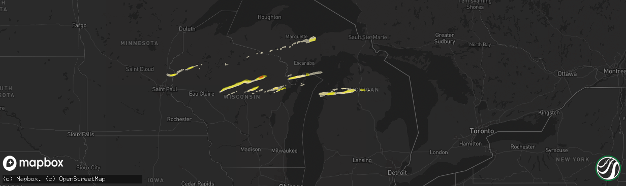 | 09/25/20209:32 PM CDT | At 231 AM EDT, a severe thunderstorm was located near Bliss, or 8 miles northwest of Pellston, moving east at 40 mph. HAZARD...Quarter size hail. SOURCE...Radar indicated. IMPACT...Damage to vehicles is possible. Locations impacted include... Cheboygan, Pellston, Carp Lake, Bliss, Cross Village, Cheboygan State Park, Alverno, Levering, Mullet Lake and Riggsville. |