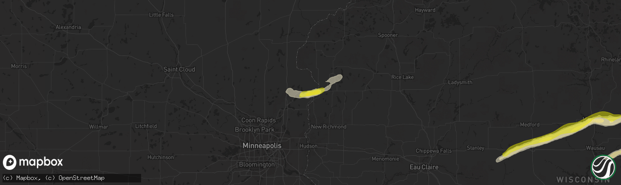 The weather event in Shafer, MN on September 26, 2020 includes Hail map. 3 states and 110 cities were impacted and suffered possible damage. The total estimated number of properties impacted is 761.