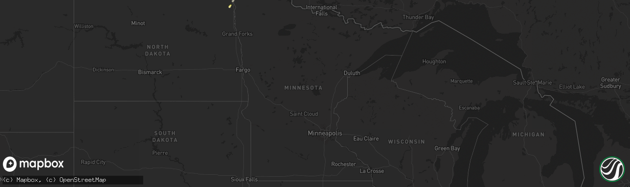 The weather event in Minnesota on October 1, 2025 includes Hail map. 2 states and 8 cities were impacted and suffered possible damage. The total estimated number of properties impacted is 118.