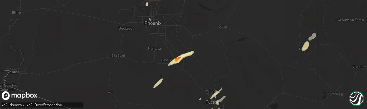 The weather event in Coolidge, AZ on October 6, 2015 includes maps. 0 states and 0 cities were impacted and suffered possible damage. The total estimated number of properties impacted is 0.