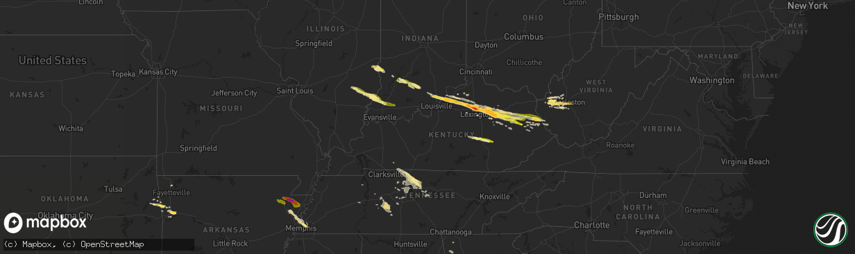 | 10/07/20143:09 PM CDT | An ef-1 tornado with maximum winds of 110 mph touched down about 3 miles sw of cynthiana and lifted about 2 miles south of the city. Path length was almost 2 miles with |