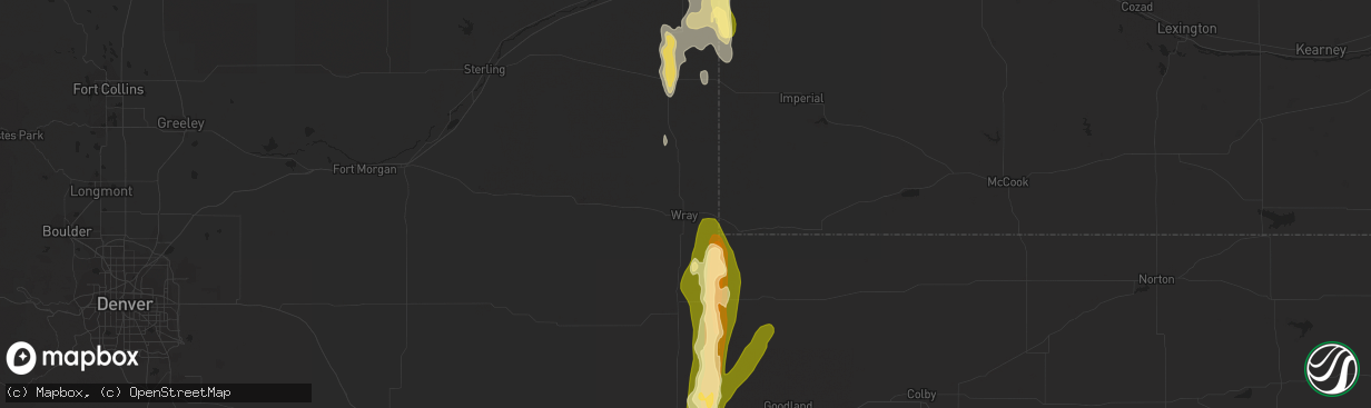 The weather event in Wray, CO on October 10, 2013 includes Hail map. 5 states and 41 cities were impacted and suffered possible damage. The total estimated number of properties impacted is 246.