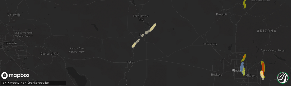 The weather event in Parker, AZ on October 13, 2025 includes Hail and Wind maps. 4 states and 13 cities were impacted and suffered possible damage. The total estimated number of properties impacted is 0.