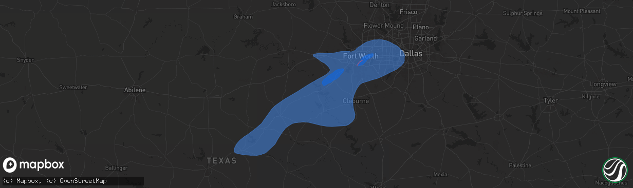 Hail Map in Granbury, TX on October 24, 2025