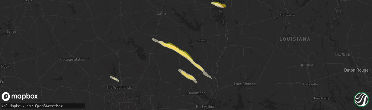 The weather event in Hillister, TX on October 28, 2025 includes Wind, Tornado, and Hail maps. 2 states and 33 cities were impacted and suffered possible damage. The total estimated number of properties impacted is 163.