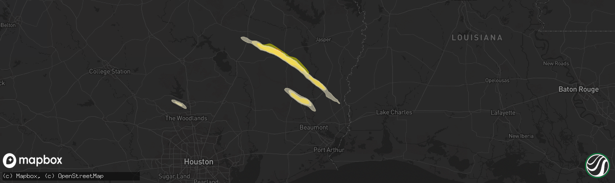 Estimated number of impacted properties by a 2.50" hail or largerStorm reports in Silsbee, TX