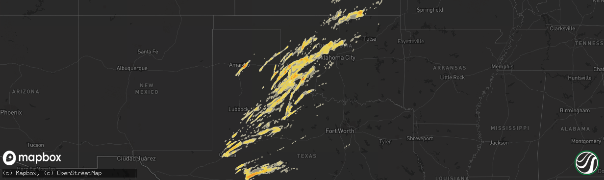 | 11/06/201111:00 PM CST | Damage reported to hangars and planes at max westheimer airport. Time estimated from radar. |