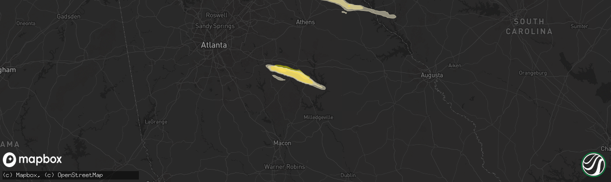 The weather event in Eatonton, GA on November 8, 2025 includes Hail map. 3 states and 59 cities were impacted and suffered possible damage. The total estimated number of properties impacted is 53.