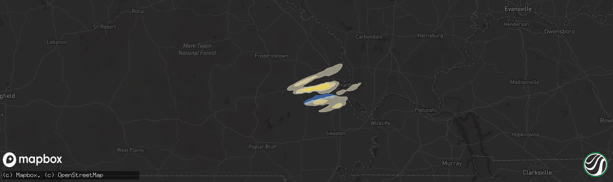 The weather event in Leopold, MO on November 18, 2025 includes Hail map. 2 states and 27 cities were impacted and suffered possible damage. The total estimated number of properties impacted is 0.