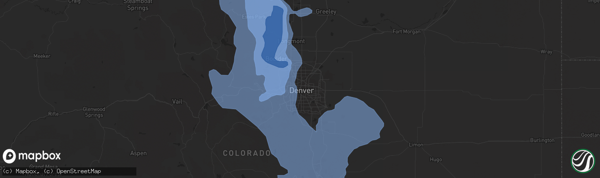 Hail Map in Denver, CO on December 30, 2021